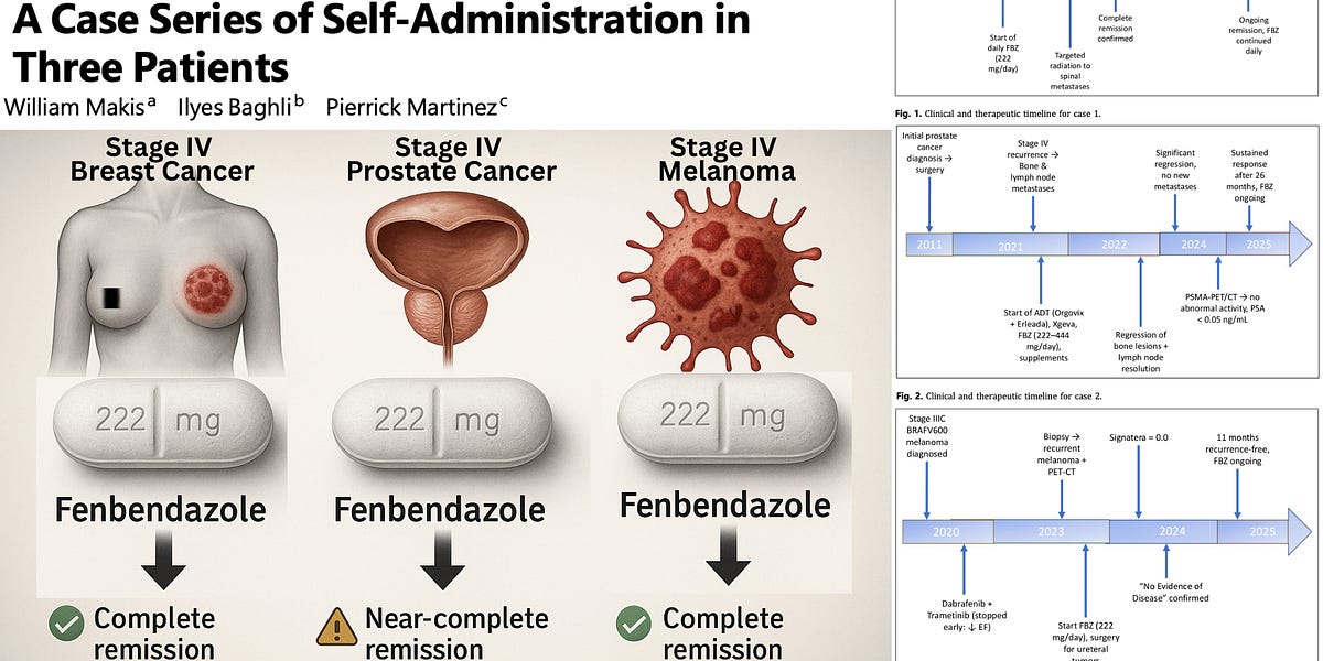 Cancer patients take notice: Fenbendazole Linked to Remission or Near-Remission in Three Stage IV Cancer Patients Breast, prostate, and melanoma patients experienced dramatic tumor regression and long-lasting remission -- without chemotherapy . . . ​ https://www.thefocalpoints.com/p/new-study-fenbendazole-linked-to